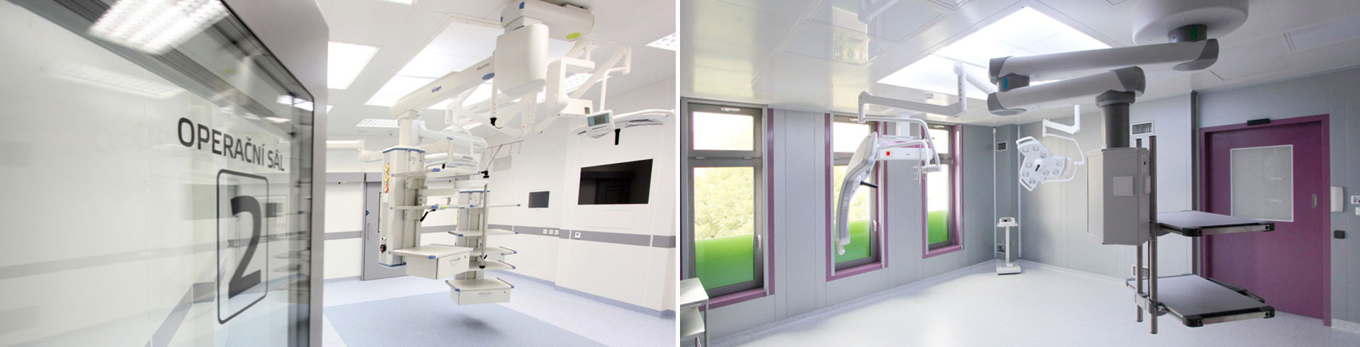 Na základě komplexnosti poskytovaných služeb a našich dlouholetých zkušeností nabízíme funkční operační sály s variabilním řešením dle Vašich individuálních požadavků, s vybavením, které je integrováno v systému vestavby a zvyšuje komfort práce personálu a s designem, který podtrhuje čistotu, kvalitu a kompaktnost celého operačního sálu.